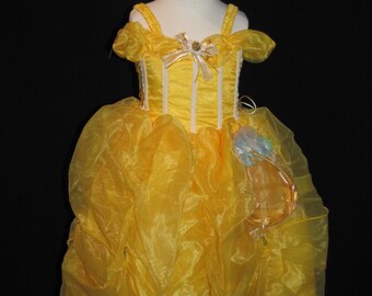 Us 88 66 Princess Belle Cosplay Costume Emma Watson Beauty And The Beast Belle Dress Halloween Costume Adult Women Yellow Party Dress On