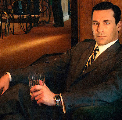 Back in September of 2010, I documented how the star of MAD MEN, Jon Hamm's character, Donald Draper was wearing a vintage Rolex Explorer as seen in the images below. If you look closely, it appears it is the exact same watch!!!