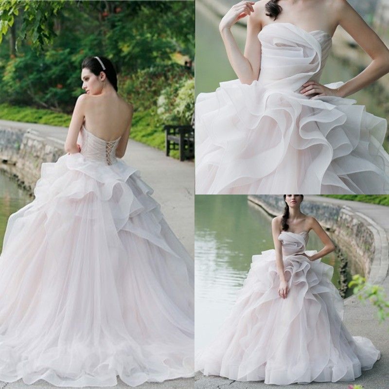 Simple Ball Gown Organza Ruffles Wedding Dresses Lace Up Back Strapless Ruched Bridal Gowns Tulle Sweep Train Wedding Gowns Custom Made Princess Ball