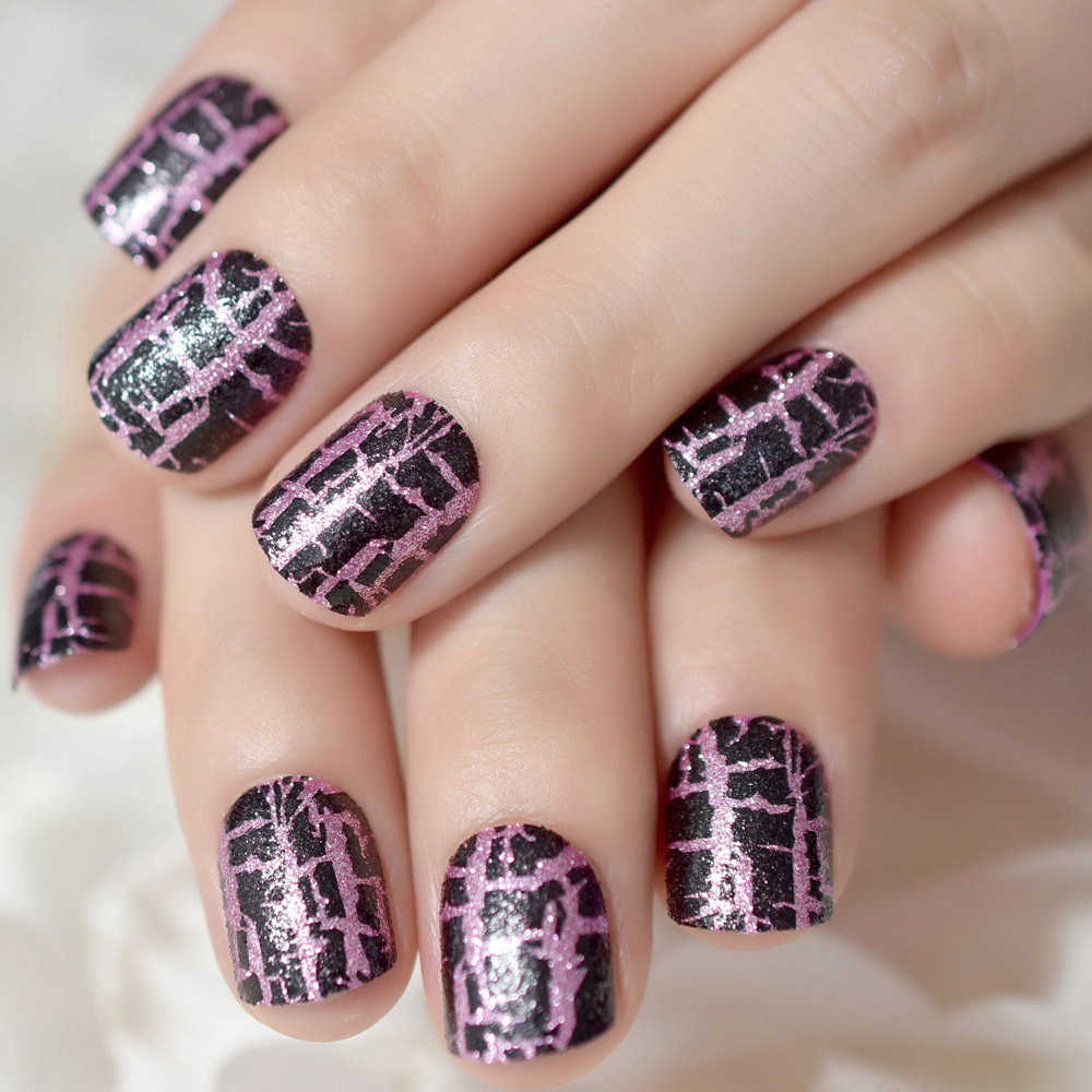 Amazon Com 24 Pcs Set Mysterious Glitter Toe Fake Nails Pink