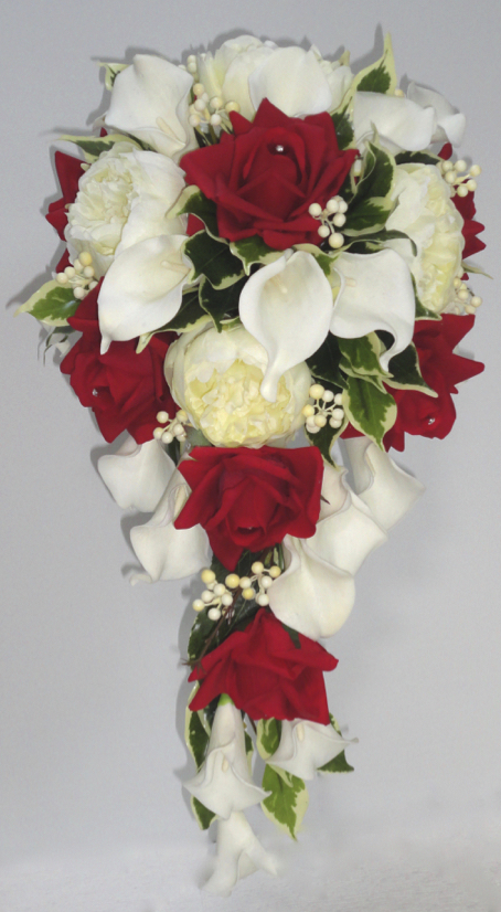 Artificial Calla Lilies Teardrop Wedding Bouquet Red Rose